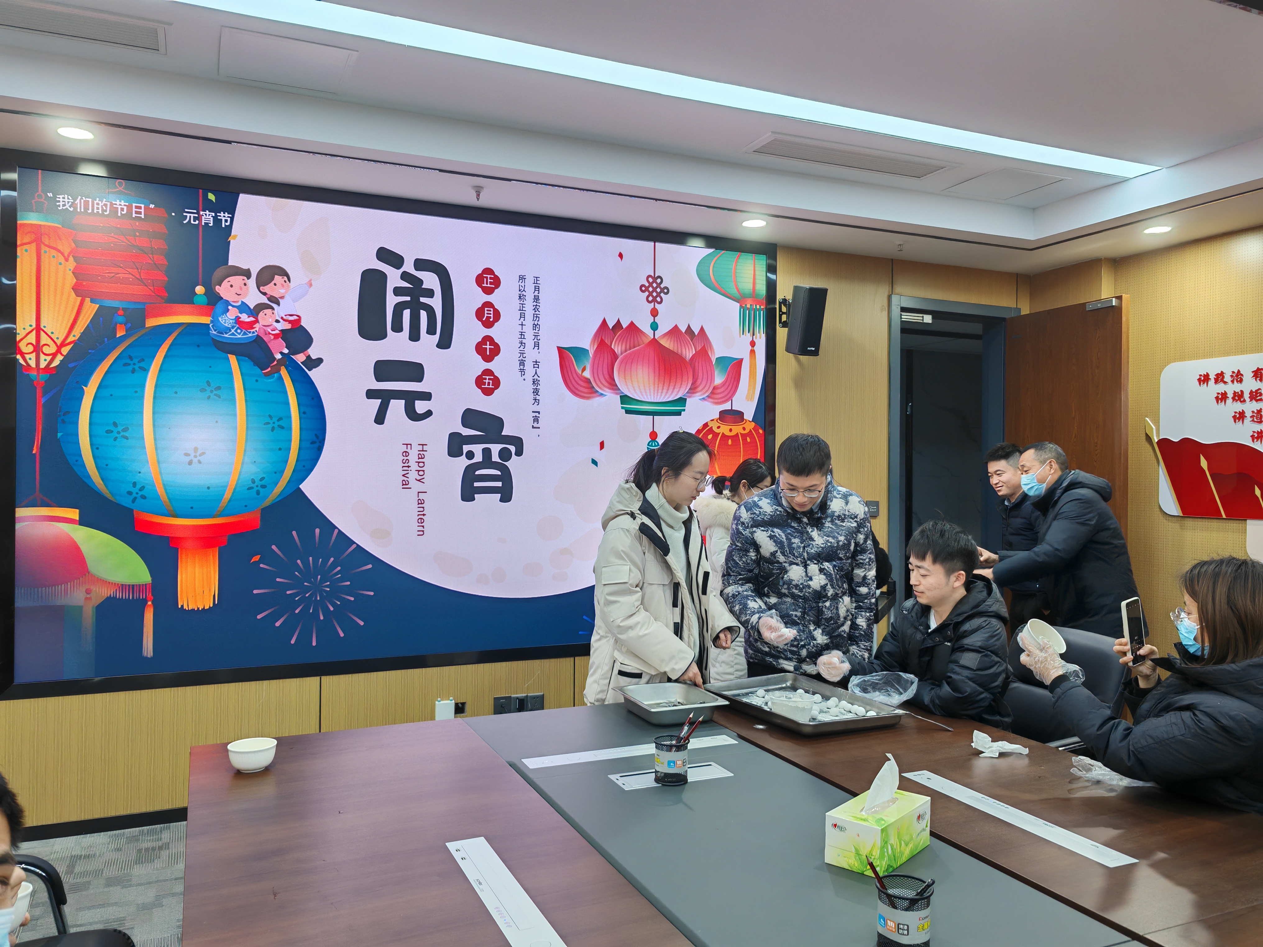 活動現(xiàn)場熱鬧有序,大家分工合作,有的揉糯米粉,有的拌陷,有的搓湯圓,體驗傳統(tǒng)文化魅力。大家圍在一起吃著湯圓,愉快的分享著工作和生活中的趣事。